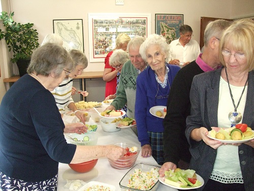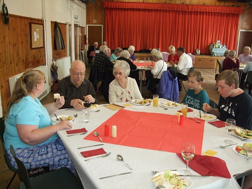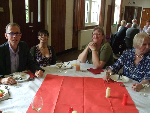 The rain did not dampen our spirits at the Garden Party in June. We moved from Peter Rose's garden to the Village Hall and a good meal and fellowship was enjoyed by all.